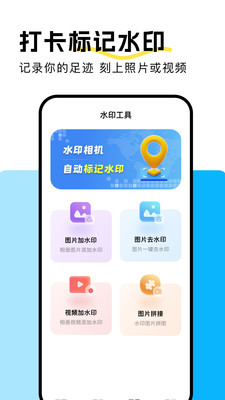 添加真实时间地点水印信息,地点时间智能实时校准,拍照时自带位置、时间、天气等水印信息,真实还原工作或生活场景,满足在日常生活及工作中对图片、视频进行时间、地点等信息标记的需求。丰富的水印模版,满足各类工作生活场景打卡拍照需求。 【适用场景】 考勤打卡、工程记录、物业管理、日常打卡等,满足您在不同场景的拍照打卡记录需求,还原真实生活场景。 【支持自定义】 自定义水印修改多种水印类型,地址、时间、天气等支持自定义修改编辑,自定义自己的水印需求,高效实用。 【专业的水印模板】 超多种水印模板,支持各种生活和工作打卡需求,现场拍照打卡,日常考勤打卡,记录工作轨迹,记录时间和地点。