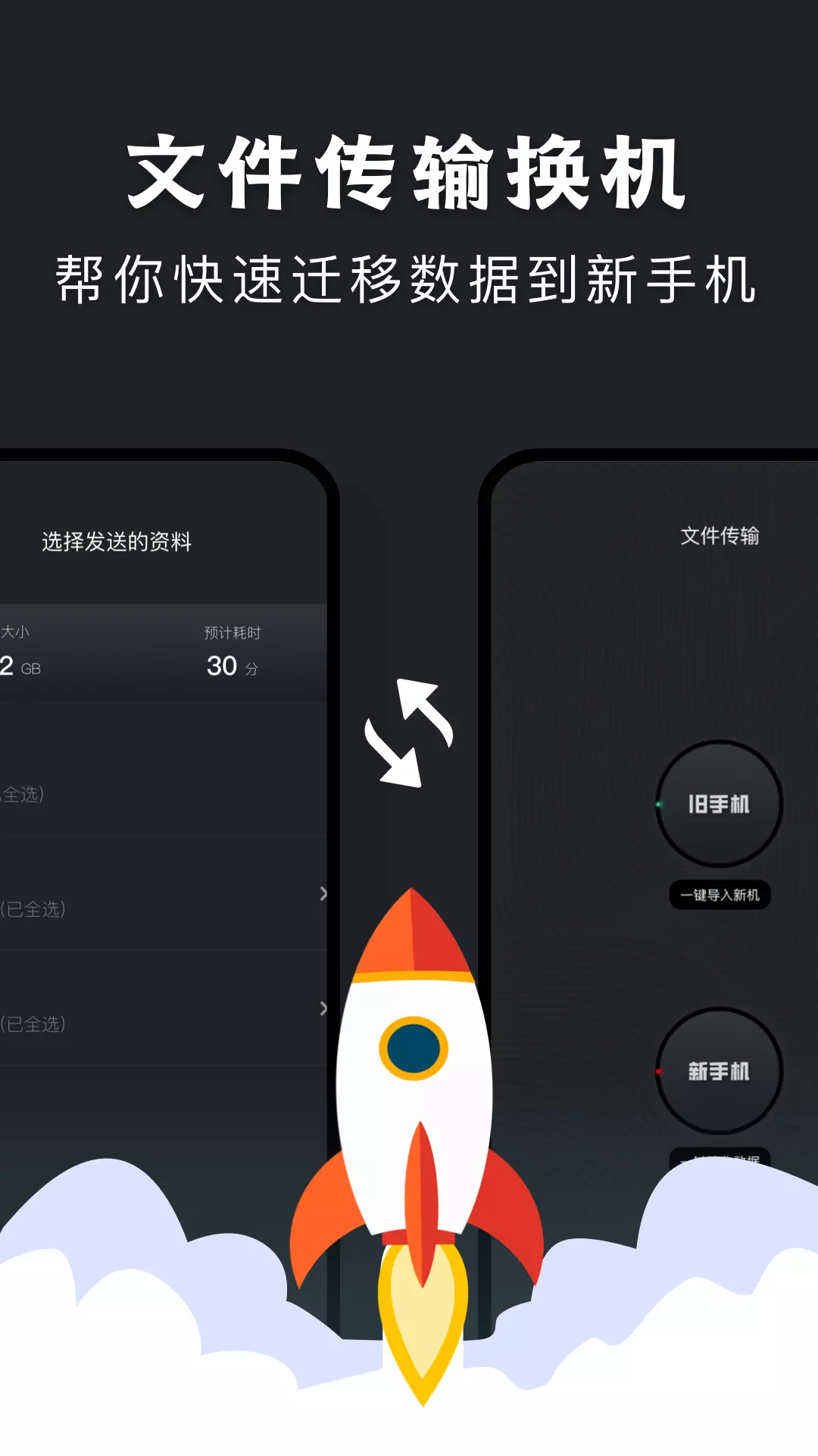 手机数据克隆软件,实现手机数据迁移,轻松换新机。无线且无需流量,扫描二维码或自建WLAN热点即可无障碍快速互传。 手机文件管理器,帮助你更好地管理手机文件,可按照图片、音乐、视频、应用等分类查看文件、高效便捷。 手机文件传输,文件互传更简单、快捷。手机克隆、手机搬家、互传、换机克隆和换机助手都能满足,零流量文件传输利器。 1.传输速度快。 不用数据线,传输速度快,无需过多等待,就能轻松将资料转移至新机,旧机换新机一步到位,快捷换机体验。 2.手机数据迁移。 轻松将旧手机的数据迁移到新手机,旧手机中的联系人、照片、视频甚至应用等数据都可以轻松快传至新手机。你在意的,都可以移走。 3.传输过程安全。 你的数据很安全,换机过程中,不会借助任何第三方,全程点对点传输,并且使用本地加密网络,数据安全无忧。 4.无需数据流量。 无需数据流量或者连接同一 WLAN,新旧手机互扫二维码,即可自建 WLAN 热点,实现互联,数据轻松转移。